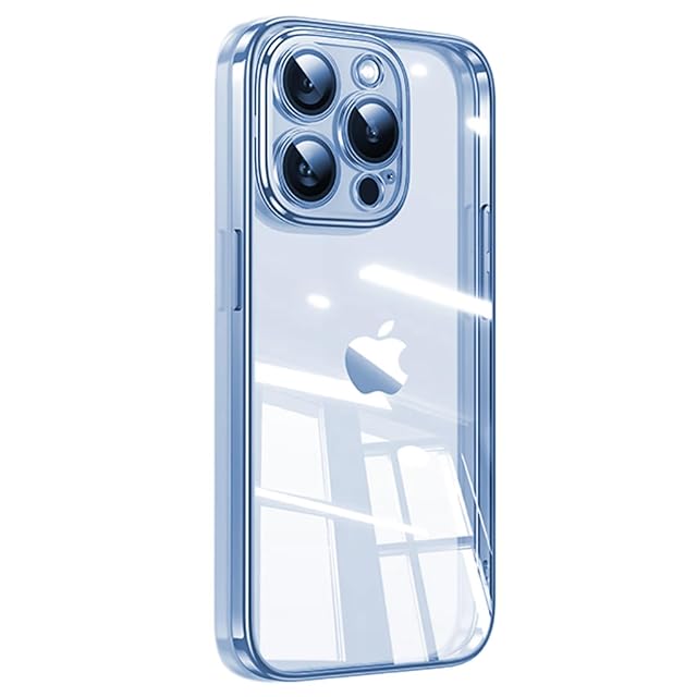 Tecxin iPhone 14 Pro用スクエアメッキケースiPhone 14proケース用ソフトクリアTPUバックカバー耐衝撃 (iPhone14 pro ブルー)