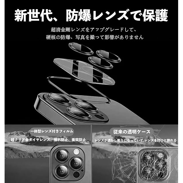【レンズフィルム付き】クリアな防爆レンズが付いており、割れにくく、レンズを擦れ傷、摩擦、衝突などのダメージから守ります。また、高透明性を持ち、スタイリッシュな一体感を仕上り、写真撮りに影響を与えず、違和感なく快適にお使いできます