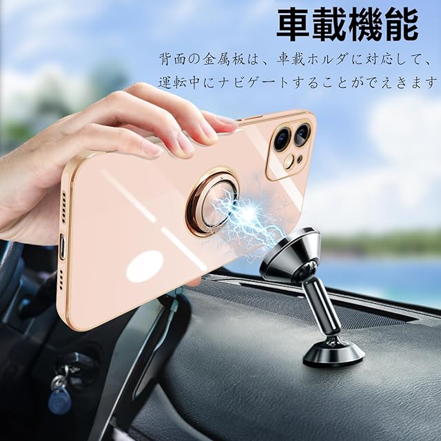 商品名:iPhone12 Mini ケース リング付き アイフォン12Mini リング カバー 耐衝撃 TPU メッキ加工 360°回転 スタンド機能 車載ホルダー ストラップホール付き 5.4インチ(ピンク)