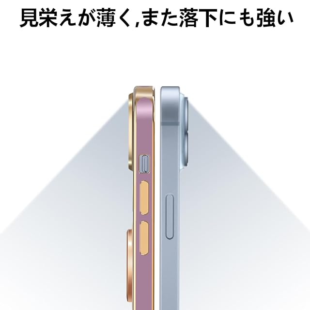 iPhone15 Plus ケース リング付き アイフォン15Plus リング カバー 耐衝撃 TPU 360°回転 スタンド機能 メッキ加工 車載ホルダー ストラップホール付き 6.7インチ(パープル)