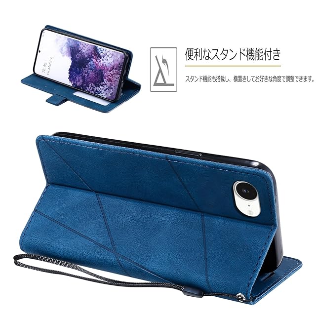 商品名:UnivoColors iPhone 16e 手帳型ケース カード収納 スタンド機能 サイドマグネット TPUケース 軽量 ストラップ付き QI充電対応 横置き機能 防指紋 レンズ保護 全面保護(ブルー)