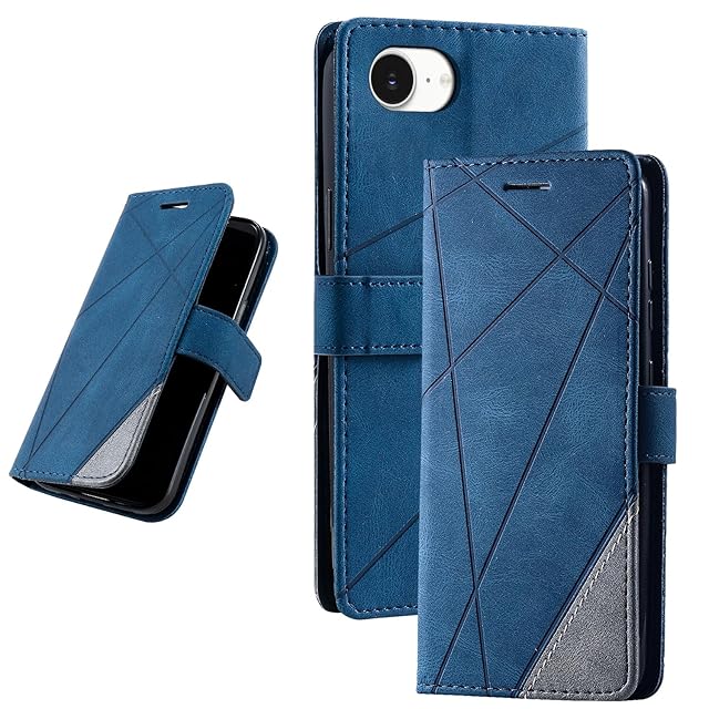 UnivoColors iPhone 16e 手帳型ケース カード収納 スタンド機能 サイドマグネット TPUケース 軽量 ストラップ付き QI充電対応 横置き機能 防指紋 レンズ保護 全面保護(ブルー)