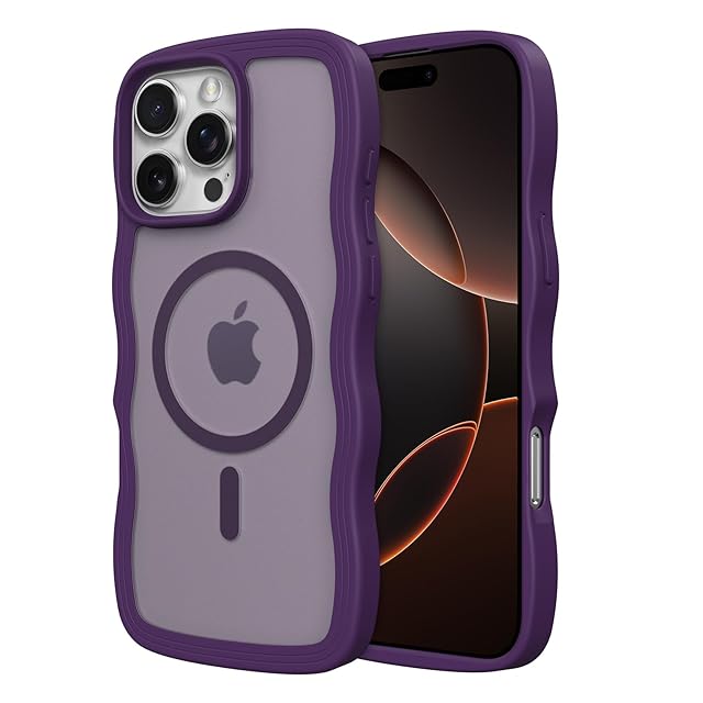 ZTOFERA iPhone 15 Pro Maxケース用,【MagSafe対応】キュートなウェーブの半透明マットスマホケース 女性用 女の子用 男性用 iPhone 15 Pro Maxケース,ダーク・パープル