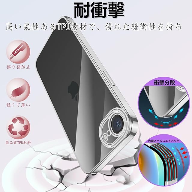 商品名:iPhone 16e ケース クリア 耐衝撃 あいふおん16eケース 米軍MIL規格 可愛い 韓国 薄型 軽量 アイフォン16e カバー ワイヤレス充電対応 (シルバー)