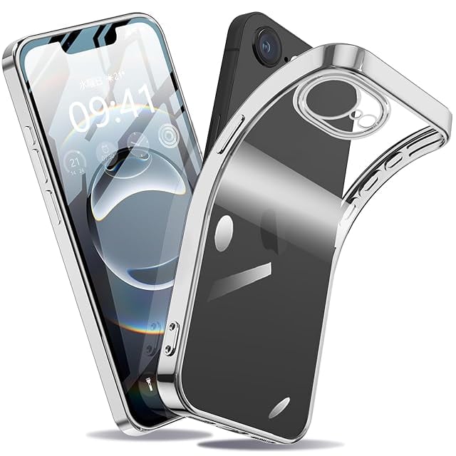 iPhone 16e ケース クリア 耐衝撃 あいふおん16eケース 米軍MIL規格 可愛い 韓国 薄型 軽量 アイフォン16e カバー ワイヤレス充電対応 (シルバー)