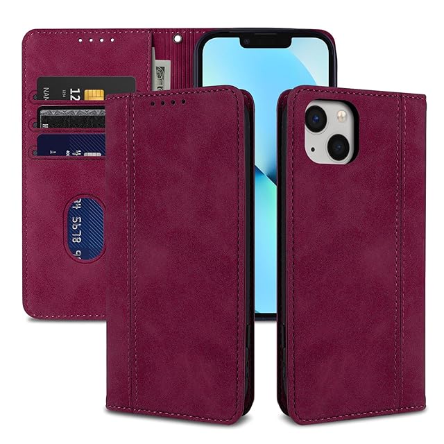 laddutoi iPhone 14 ケース 手帳型 防塵 iPhone 13 ケース 手帳型 耐衝撃 アイフォン14 ケース 手帳型 全面保護 いphone 14 ケース 手作り いphone13 いphone14 スマホケースアイフォン13 アイフォン14 カバーiPhone 14/13 ケース 手帳型-あかい