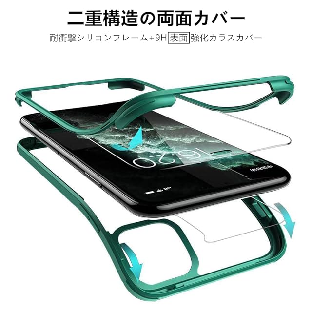【100%画面感度】表面9H強化ガラスは、高透過率、適切に液晶画面を保護します。画面上の操作も違和感なくスムーズに行え、スムーズなタッチ操作体験をお楽しみいただけます。表面、裹面とも、二重構造の透明素材を使用されています。iPhone本体の自然な外観を維持する元のデザインも綺麗に見られます。(ご注意:他のスクリーン保護フィルムと同時に使用しないでください。)