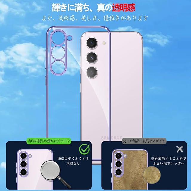 商品名:【FULEEYUHN】Samsung Galaxy S23 ケース クリア ギャラクシー S23 カバー 透明 TPU素材 耐衝撃 薄型 軽量 SC-51D SCG19 対応 韓国 ファッション スマホケース メッキ加工 黄変防止 人気 ストラップホール付き ワイヤレス充電対応(パープル)