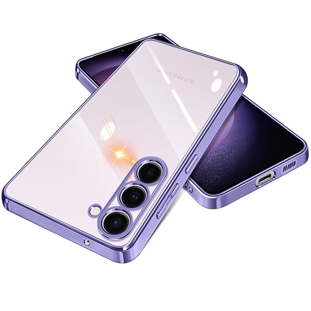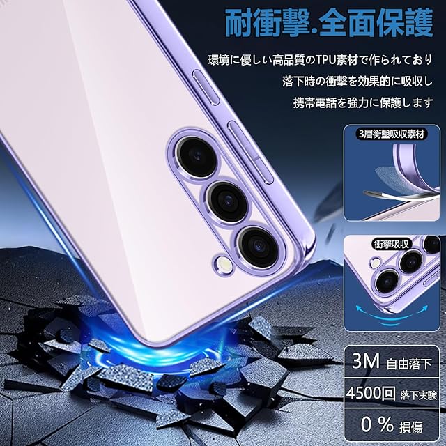 【FULEEYUHN】Samsung Galaxy S23 ケース クリア ギャラクシー S23 カバー 透明 TPU素材 耐衝撃 薄型 軽量 SC-51D SCG19 対応 韓国 ファッション スマホケース メッキ加工 黄変防止 人気 ストラップホール付き ワイヤレス充電対応(パープル)