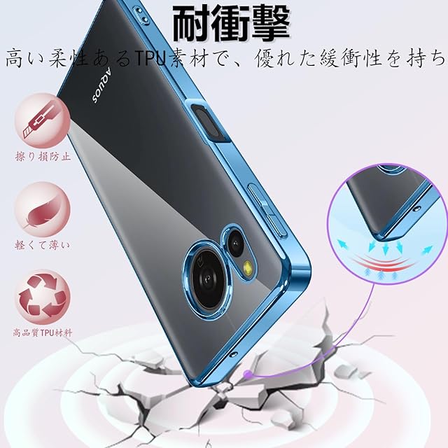 商品名:AQUOS sense8 ケース クリア 軽量 耐衝撃 TPU バンパー 米軍MIL規格取得 SH-54D カバー SHG11 スマホケース 極薄 黄変なし ストラップホール付 (ブルー)