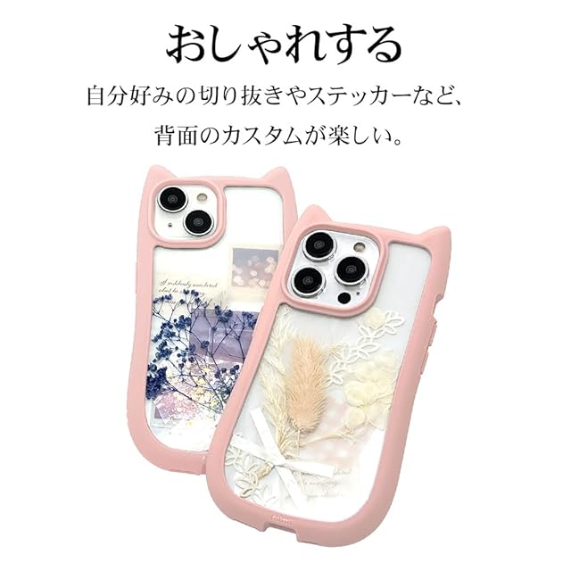 商品名:ラスタバナナ ケース カバー iPhone15 14 13 共用 ハイブリッド 猫耳 TPUバンパーケース スモーキーピンク 7638IP361HB