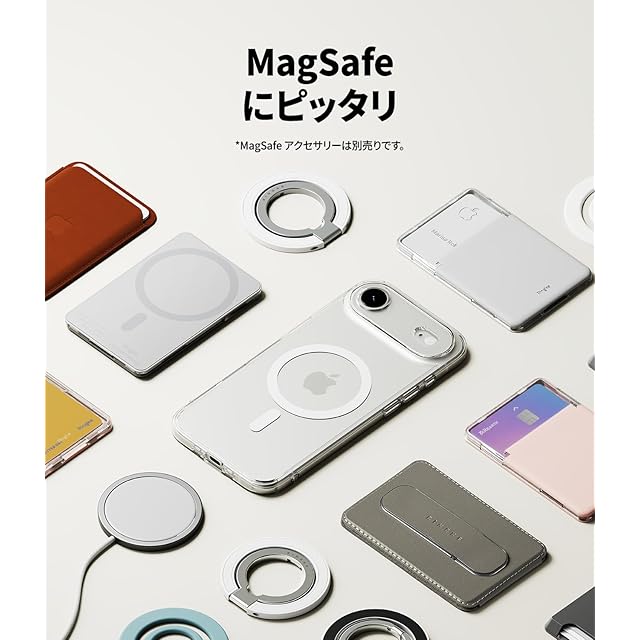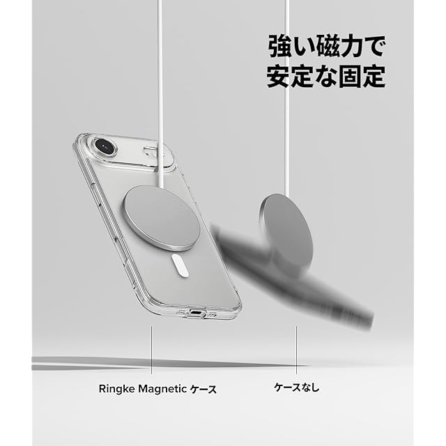 【Ringke】 iPhone Air対応のマット仕上げ磁気対応クリアケース「Fusion Magnetic Matte」。<br>指紋が付きにくい特殊マットコーティングにより、清潔感のある見た目を長くキープできます。<br>背面中央に内蔵されたネオジム磁石のリングは、MagSafe充電器やスタンド、カードホルダーなどの各種アクセサリーにしっかりと固定可能です。<br>磁石はケース内部にしっかりと埋め込まれており、落下やデバイスへの損傷の心配がありません。<br>透明なポリカーボネート背面と衝撃吸収TPUバンパーを組み合わせたハイブリッド構造で、高い保護性能を実現。<br>TPU素材は改良されており、黄ばみにくくクリアな状態を長く保ちます。<br>マット加工された背面パネルは、紫外線防止コーティング付きで傷や衝撃にも強い仕様。<br>スリムで軽量な設計により、手にフィットしやすく持ちやすいのも特長です。<br>ボタン部分は保護されていながら押しやすく、即座に反応します。<br>スピーカーや充電ポート周辺は精密にカットされており、様々なケーブルやアクセサリーに対応します。<br>カメラや画面部分にはわずかな高さを設けており、テーブルや床との直接接触を防止。<br>ケース両側にはストラップホールが内蔵されており、お好みのリストストラップやアクセサリーの取り付けが可能です。<br>ワイヤレス充電やMagSafeアクセサリーの使用を最大限に活かせる、機能性とデザイン性を兼ね備えた最先端ケースです。