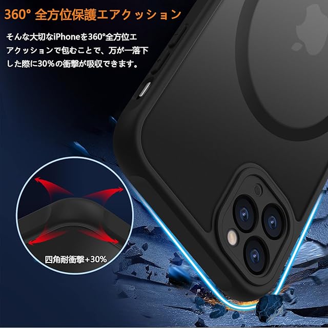 【対応機種】iPhone 専用です。精確にカット加工しているので、ボタンが押しやすく、ポートも使いやすくなっており、機能性に影響しません。<br> 【MagSafe対応・超強磁力】1,900 gの吸着力を備えた強力な内蔵磁石により、吸着力を高めて、安定感をアップしてエネ損失なしの快速ワイヤレス充電できる。様々な状況で安定した状態を保ちます。MagSafeバッテリー、MagSafeカードケース、MagSafeワイヤレス充電器、MagSafeリング、車載スタンドなど様々なMagSafeニーズに対応、Magsafeの便利さを満喫しましょう!<br> 【半透明・マットな質感】背面が透ける特性を汲み取ったデザインで、iPhoneのかっこいいリンゴロゴが薄っり見えて、高級感と神秘感が溢れている。背面のポリカーボネートは耐久性や耐摩耗性に優れ、長く使っても綺麗に見え。スマホに近い感覚を味わうことができ。<br> 【高耐衝撃性・カメラ保護】免震構造である高弾力バンパーと耐震構造である丈夫なポリカーボネート背面で組み合わせて、バランスが良く落下衝撃を本体に伝えにくくなる。隆起エッジにより、スマホを置いた時にスクリーンやカメラが擦れにくくなり、傷から保護することができます。<br> 【スリム・軽量】この握りやすいケースは、厚さたった1.2 cmなので、スマホに近い感覚を味わうことができ、ケースをつけたままコネクタへの接続が可能で。<br> 【品質】iPhone ケースを安心してお使いいただくために、当店は製品に関する品質を提供します。製品に不具合がある場合、注文履歴画面より出品者にご連絡いただき、お問い合わせ内容に応じて、交換などの対応が可能です。<br>