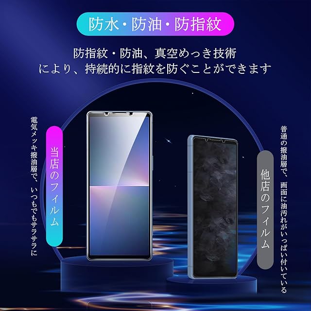 <b>なぜ Tzcizの Xperia 5 V SO-53D フィルム とレンズフィルム を選んだのか?</b><br><br><b>一、上質な製品</b><br><br>【表面強度:9H】<br>日本旭硝子素材を採用、表面強度指数は9Hで、一般的なフィルムの3倍で、で鋭利な物による傷を完璧にブロック。<br><br>【飛散防止】<br>飛散防止加工により、万が一、割れてしまった場合にもほとんどガラス破片が飛び散りづらくて、安心です。<br><br>【ラウンドエッジ加工】<br>ラウンドエッジ加工、手にフィットしやすくて、それに端の部分も浮かべにくいです。<br><br>【気泡防止】<br> フイルム接着面に吸着に優れたシリコンコーティングを施しているので、位置を合わせて上から軽く置くだけで気泡が入ることなく。<br><br>【指紋防止】<br>指紋防止コーティング加工、普通のガラスより指紋が残りにくく。疎水性と抗油性を兼ねていて、水と油脂を画面から簡単に取り除きます。<br><br>【高透過率】<br>透明度が99%以上と高く、フィルムを貼っていても画面の精細さを損ないません、スクリンの鮮明な色を復元します。<br><br>【高感度タッチ感】<br>3Dタッチ対応ためます。高感度のフィードバックで遅延なく、本来のタッチ感で、快適な操作感を実現します。<br><br>【パッケージ内容】<br> Xperia 5 V SO-53D ガラスフィルム【2枚】<br>Xperia 5 V SO-53D レンズ保護フィルム 【2枚】<br>アルコールペーパータオル【2枚】<br>ホコリ除去用ステッカー【2枚】<br>取扱説明書【1枚】<br><br><br><b>二、良好なアフターサービス </b><br><br>製品には万全を期しておりますが、万が一輸送の過程による落下や衝撃を受けて不具合か初期不良でしたら、遠慮なく連絡してください。 私達は一日中オンラインサービスで皆様に最高のサービスを提供します!<br><br><b>三、Xperia 5 V SO-53D 液晶保護フィルムの貼り付け方法</b><br><br>1.アルコールパッドを使って液晶画面の汚れを拭き取リます。<br>2.ホコリ取りシートを使って、液晶画面に残ったホコリや布繊維を取り除きます。<br>3、フィルムの接着面の保護フィルムを剥がします。コーナーの位置を合わせ、画面上に載せます。コーナー四点を取り付けます、この時点で位置がズレていたら修正します。<br>4、位置が決まったら、液晶画面にそっと置くように手を離す指で押すと一発で綺麗に貼れますが、気泡あるいは浮きが少し出た場合は、クロスを使って気泡を中央から外側に押し出して下さい。<br>注意:貼り直す時、一部のフィルムを剥がすのではなく(フィルムの素材はガラスなので、剥離と貼り付けの力が不均衡、ひび割れや気泡混入、端が浮いてるなどのことが出る可能性があります。)、フィルム全体を剥がすのはポイントです。貼り直しによる浮きを避ける為、剥がす時にフィルムの接着面に触らないように慎重に剝がしてくださいませ。
