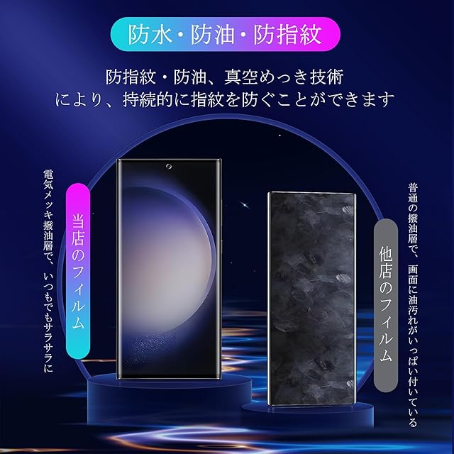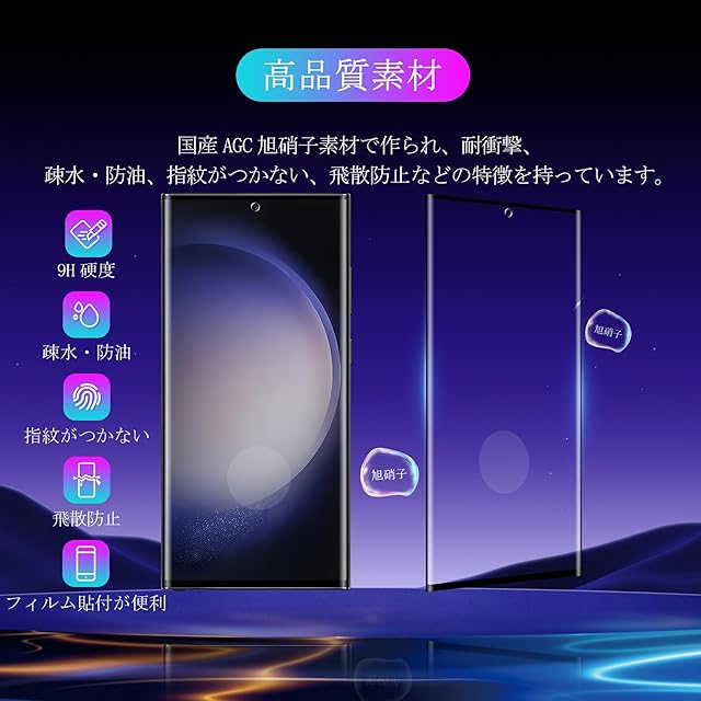☺☞【簡単に貼り付け】ギャラクシー S23 Ultra ガラスフィルムをLCD画面に置くだけで、簡単に自然に吸着して貼り付けることができ、表面にドット技術スタイルの極めて小さな穴を使って、空気漏れの問題を大幅に改善し、気泡の発生を避けます。誰でも簡単、綺麗に貼り付けます。【指紋防止、撥水、油防止】保護フィルムは真空電気メッキプロセスを使って、AF分子防油層を備えて、非常に滑らか、耐水性も高くて、耐油性にも優れます。油や指紋が付着しにくいので、汚れがあれば、サッと拭くだけできれいになります。指触りもスッキリ、画面操作もストレスなくて、とても快適に使いいただけます。一気に液晶画面の油、ホコリ、指紋の付着、キズ、磨耗などの悩みを解決しました。
