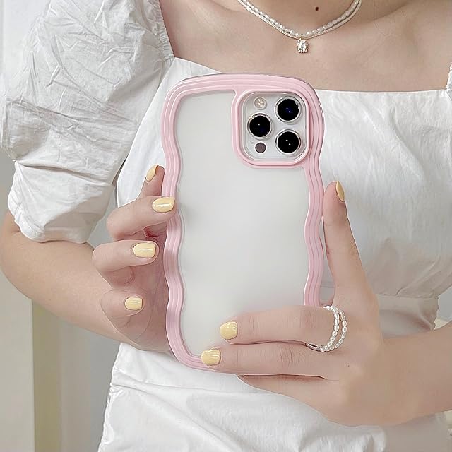 商品名:UEEBAI 対応 iPhone 15 用の ケース ソフト TPU カバー 可愛い おしゃれケース 透明 ウェーブ デザイン スマホケース ワイヤレス充電対応 軽量 薄型 耐衝撃 人気 波型 バンパー スマホケース - ピンク