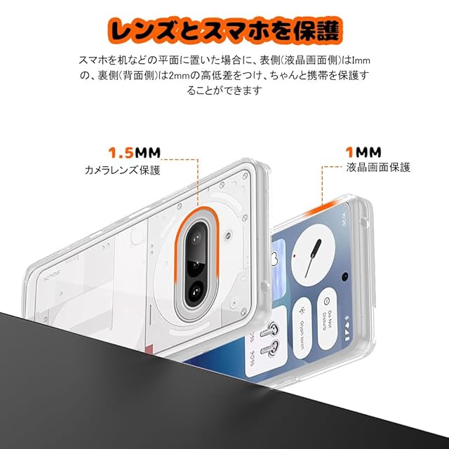 【耐衝撃、ぜんほうい保護】Nothing Phone 3a ケースは柔らかいTPU素材を使用し、本体との擦れを防げ、柔軟性が高く、着脱が簡単で。スクリーンやカメラ周辺の縁を高くすることで傷から保護します。落下時のダメージを最小限に抑えることが可能です。大事なデバイスをぜんほうい保護します。