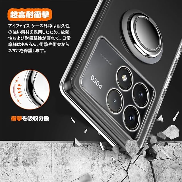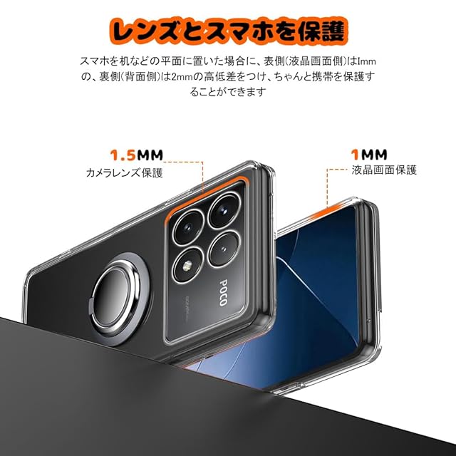 商品名:For Xiaomi POCO F6 Pro ケース リング付き 透明 シャオミ POCO F6 Pro スマホケース リング クリア シリコン 薄型 スタンド機能 耐衝撃 耐久 滑り止め(Xiaomi POCO F6 Pro クリア)