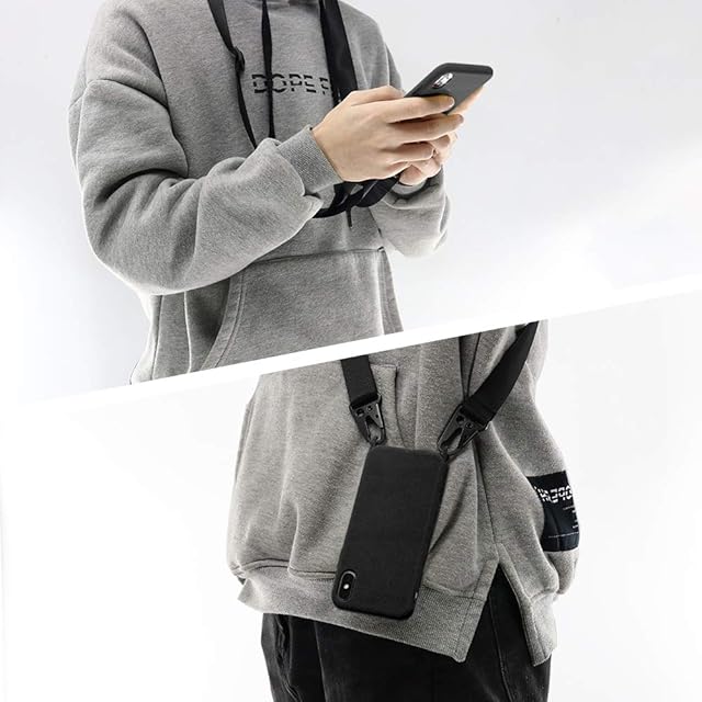 商品名:UnnFiko for iPhone 12 Pro Max ケース ネックストラップ スマホケース 蛍光色 シリコン アイフォン 12 Pro Max ケース シンプル ソフト 保護カバー 携帯ストラップ 紐付き 斜めがけ (iPhone 12 Pro Max, Black)