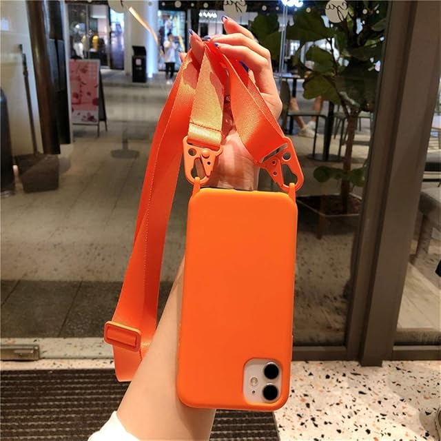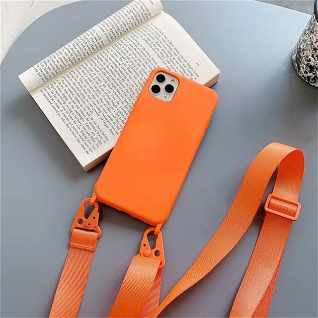 商品名:UnnFiko For iPhone 17 Pro ケース ネックストラップ スマホケース 蛍光色 シリコン アイフォン 17 Pro ケース シンプル ソフト 保護カバー 携帯ストラップ 紐付き 斜めがけ (iPhone 17 Pro,オレンジ)