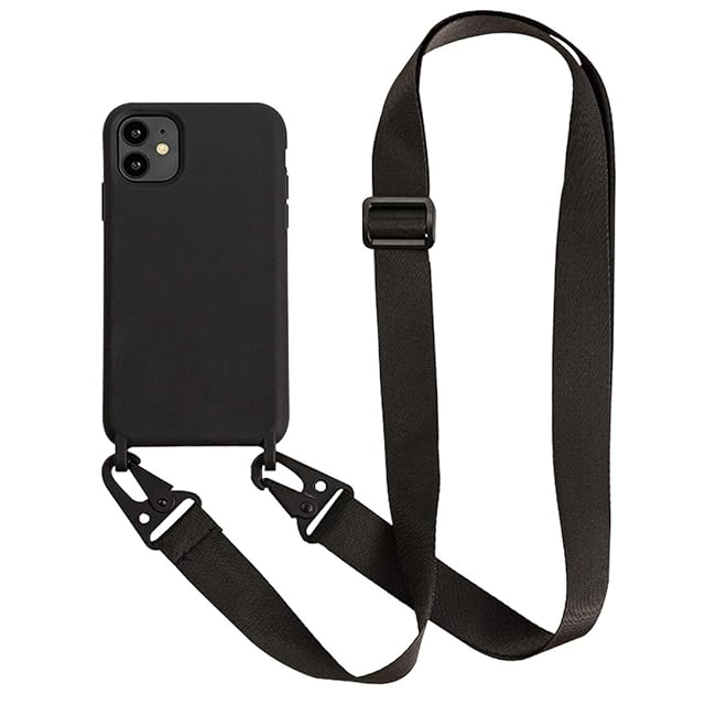 商品名:UnnFiko for iPhone XR ケース ネックストラップ スマホケース 蛍光色 シリコン アイフォン XR ケース シンプル ソフト 保護カバー 携帯ストラップ 紐付き 斜めがけ (iPhone XR, Black)