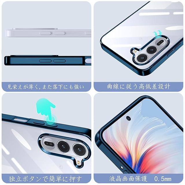 Arrows Alpha F-51F M08 ケース クリア アローズ アルファ F-51F カバー スマホケース 耐衝撃 透明 TPU 薄型 軽量 メッキ加工 ソフトケース 人気 保護カバー (ブルー)