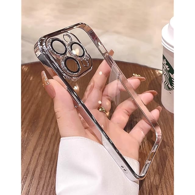 Tecxin iPhone 14 Pro用スクエアメッキケースiPhone 14proケース用ソフトクリアTPUバックカバー耐衝撃 (iPhone14 pro シルバー)