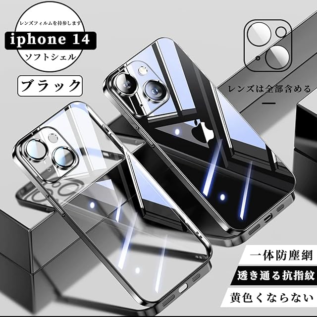 Tecxin iPhone14用スクエアメッキケースiPhone 14ケース用ソフトクリアTPUバックカバー耐衝撃 (iPhone14 ブラック)