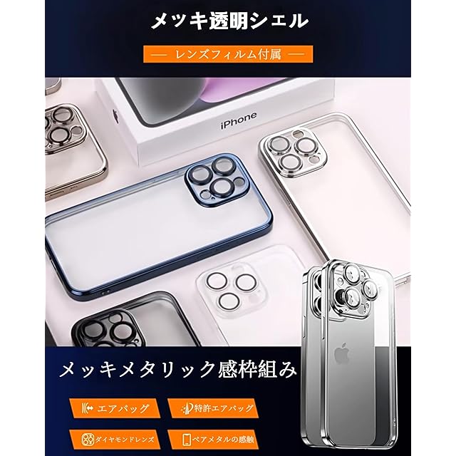 【レンズフィルム付き】一体式保護ケース、全包レンズ、剃り防止、転倒防止、黄色くならない、メッキ工芸精彫細琢