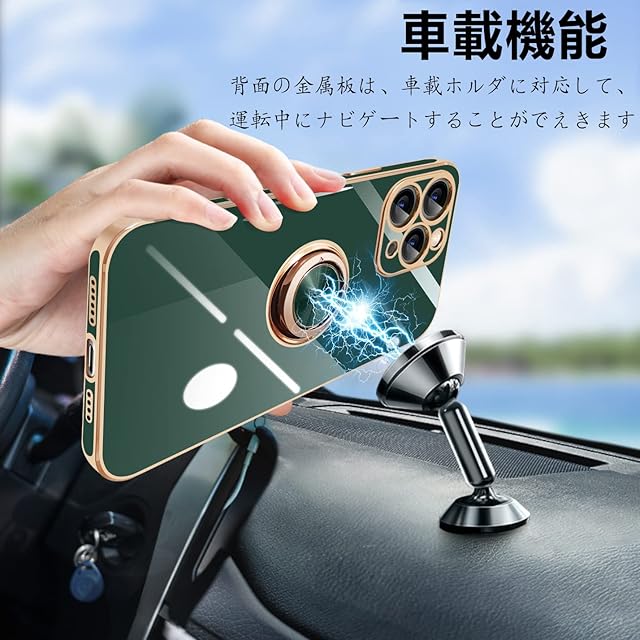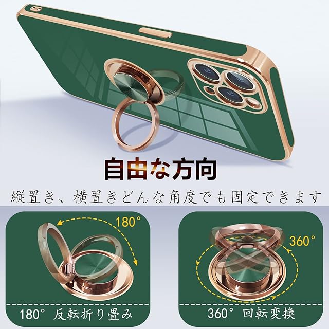 商品名:iPhone11 pro ケース リング付き アイフォン11pro リング カバー 耐衝撃 TPU メッキ加工 360°回転 スタンド機能 車載ホルダー ストラップホール付き 5.8インチ(ダークグリーン)