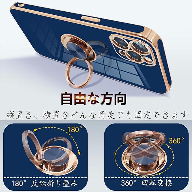 商品名:iPhone11 pro ケース リング付き アイフォン11pro リング カバー 耐衝撃 TPU メッキ加工 360°回転 スタンド機能 車載ホルダー ストラップホール付き 5.8インチ(ブルー)