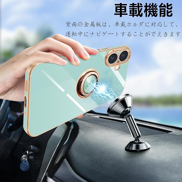 商品名:iPhone16 Plus ケース リング付き アイフォン16Plus リング カバー 耐衝撃 TPU 360°回転 スタンド機能 メッキ加工 車載ホルダー ストラップホール付き 6.7インチ(ライトシアン)