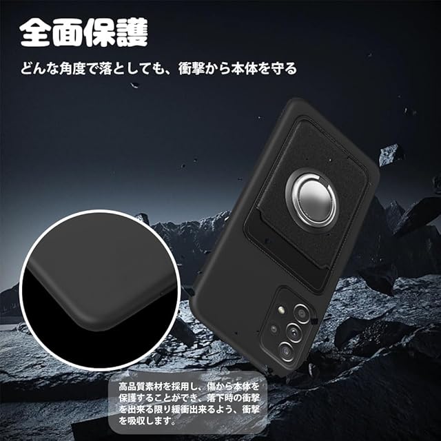商品名:対応 Galaxy A51 5G ケース SCG07 カード収納 リング付き 保護カバー ギャラクシーA51 スマホケース リング スタンド付き シリコン スタンド機能 マット質感 滑り止め 指紋防止 黑