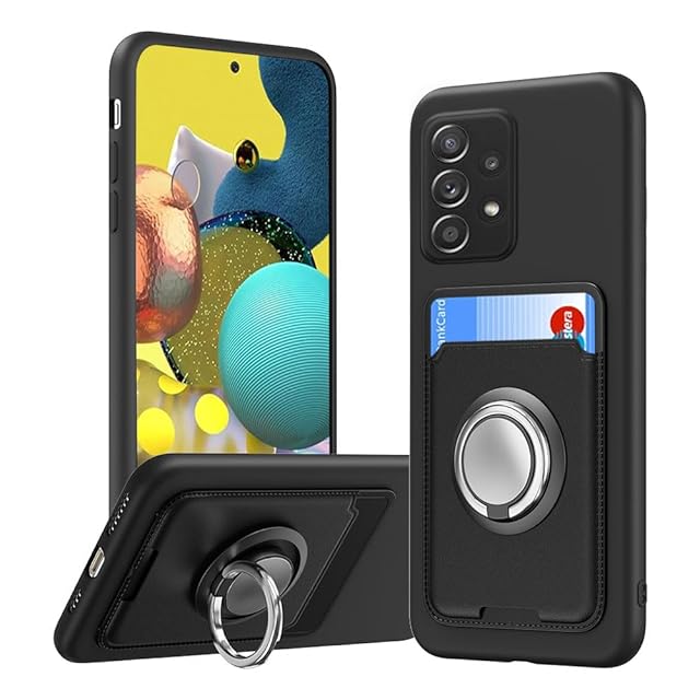 対応 Galaxy A51 5G ケース SCG07 カード収納 リング付き 保護カバー ギャラクシーA51 スマホケース リング スタンド付き シリコン スタンド機能 マット質感 滑り止め 指紋防止 黑