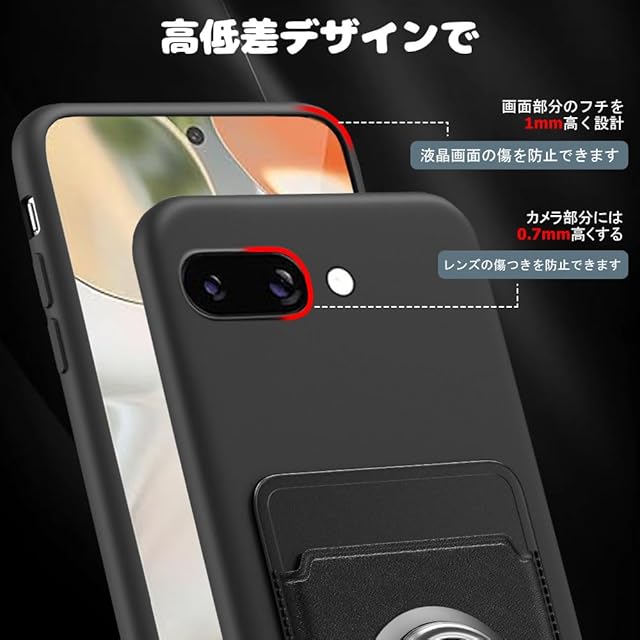 商品名:For Google Pixel 9A 5G ケース カード収納 リング付き 保護カバー ピクセル9A 5G ケース リング スタンド付き シリコン スタンド機能 マット質感 滑り止め 指紋防止 黑