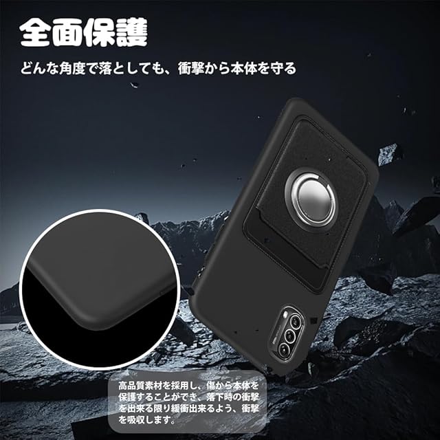 商品名:対応 Moto G52j 5g / Moto G52j 5g II ケース カード収納 リング付き 保護カバー モトローラ g52j 2 ケース リング スタンド付き シリコン スタンド機能 マット質感 滑り止め 指紋防止 黑