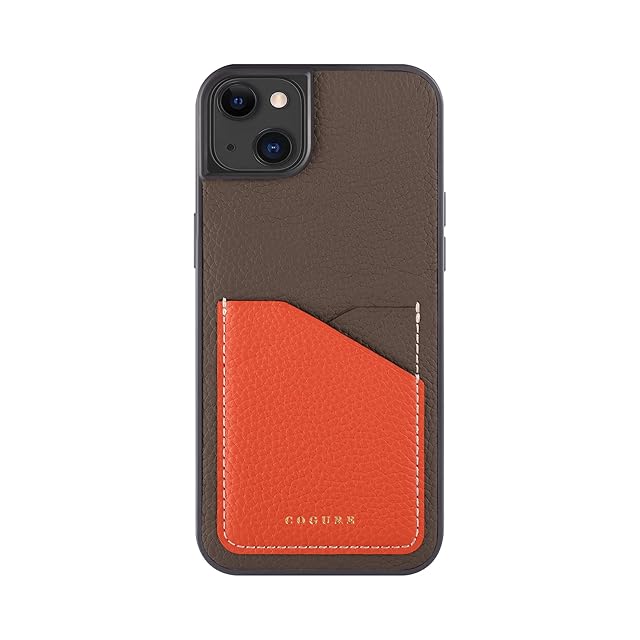 COGURE コグレ iPhone15Plus ケース 本革 シュリンクカーフレザー カード入れ シンプル おしゃれ ギフトボックス付き COPC2 エトープ+オレンジ