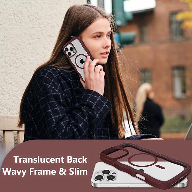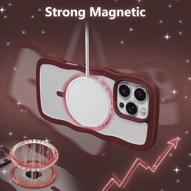 ZTOFERA iPhone 15 Pro Maxケース用,【MagSafe対応】キュートなウェーブの透明性マットスマホケース 女性用 女の子用 男性用 iPhone 15 Pro Maxケース,ワインレッド クリア