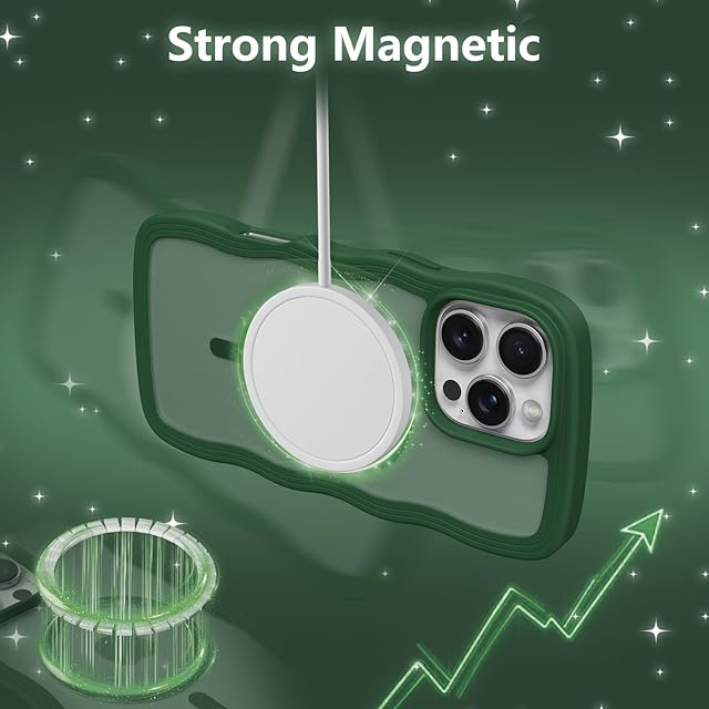 ZTOFERA iPhone 15ケース用,【MagSafe対応】キュートなウェーブの半透明マットスマホケース 女性用 女の子用 男性用 iPhone 15ケース,濃い緑