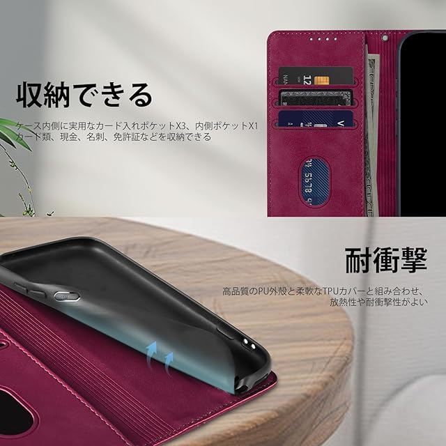 【カード収納&横置きスタンド機能】❶このso52c ケースは内側に実用性のカード入れポケット×3、内側ポケット×1、カード類、現金、名刺、免許証入れなどを収納でき、通勤も通学にも楽々タイプです。❷水平ブラケット機能が付いており,好きな角度に合わせて動画を見たり読んだりして、両手が解放さ、長時間での新幹線、飛行機の中での暇つぶしに最適ですよね。