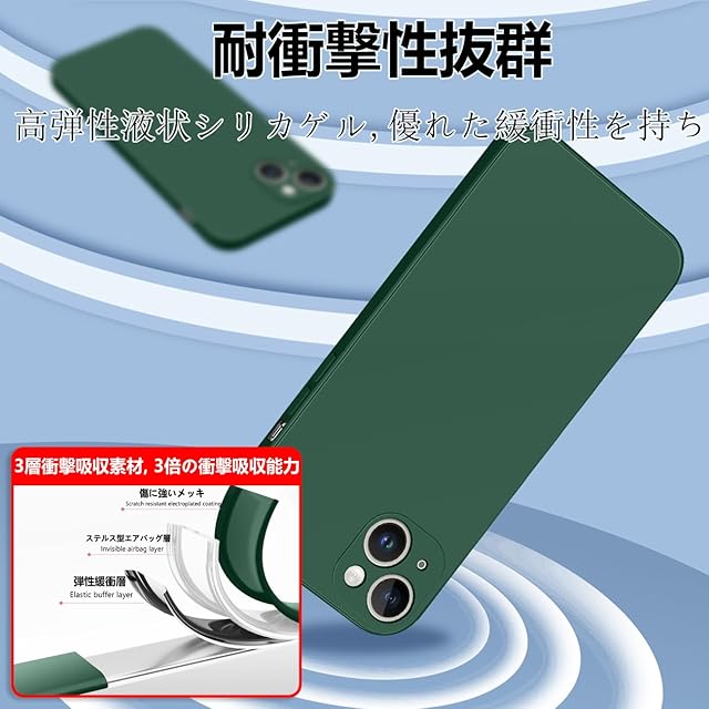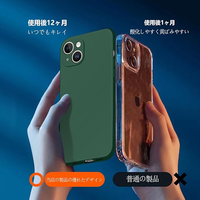 商品名:iPhone 13 ケース シリコン 液体シリコン 耐衝撃 アイフォン13 カバー 薄型 軽量 ソリッドカラー シンプル ストラップホール付き マット感 人気 指紋防止 レンズ保護 ソフト ワイヤレス充電対応 (グリーン)
