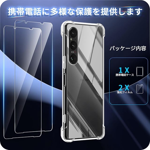 商品名:対応 Xperia 1 VI SO-51E フイルム (2枚入り) + ケース エクスペリア 1 VI ガラスフイルム 液晶保護フィルム 強化ガラス ラウンドエッジ加工 硬度9H 飛散防止 超薄0.26mm 3D Touch対応 高感度 撥油性 指紋防止 xperia1 vi カバー 柔軟 TPU 全透明 黄変しにくい 滑り止め 落下防止 すり傷防止 柔軟 軽薄 携帯便利