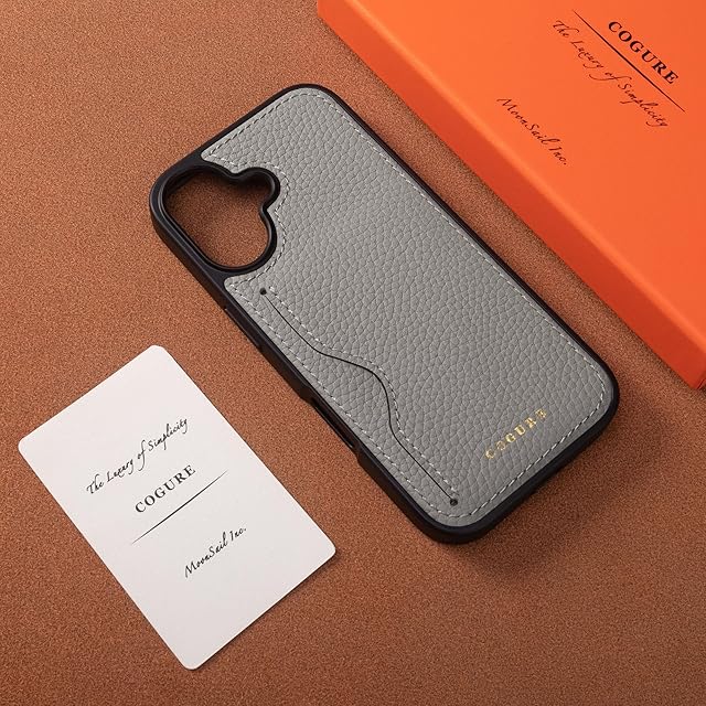 COGURE スマホケース 互換 iPhone17 ProMax ケース 本革 シュリンクカーフレザー カード入れ TPUケース シンプル おしゃれ 専用ボックス付き COPC1 エトープ【Etoupe】