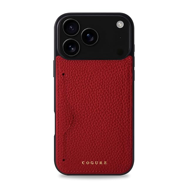 COGURE スマホケース 互換 iPhone17 ProMax ケース 本革 シュリンクカーフレザー カード入れ TPUケース シンプル おしゃれ 専用ボックス付き COPC1 レッド【Red】