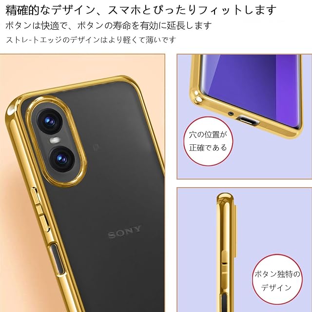 商品名:Peipeizi Xperia 10 VI ケース SO-52E SOG14 XQ-ES44 クリア 耐衝撃 エクスペリア10 VI ケース TPU 透明 薄型 軽量 スマホカバー ストラップホール付 米軍MIL規格取得 レンズ保護 全面保護 衝撃吸収 指紋防止 (ゴールド)