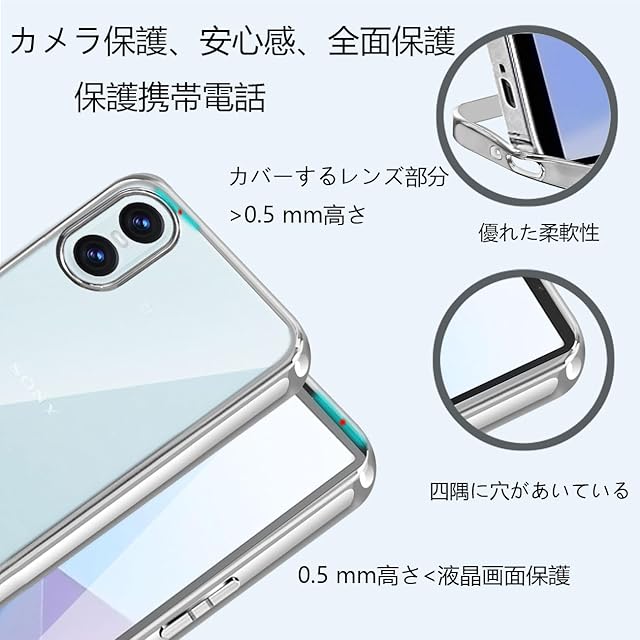 商品名:Peipeizi Xperia 10 VI ケース SO-52E SOG14 XQ-ES44 クリア 耐衝撃 エクスペリア10 VI ケース TPU 透明 薄型 軽量 スマホカバー ストラップホール付 米軍MIL規格取得 レンズ保護 全面保護 衝撃吸収 指紋防止 (シルバー)