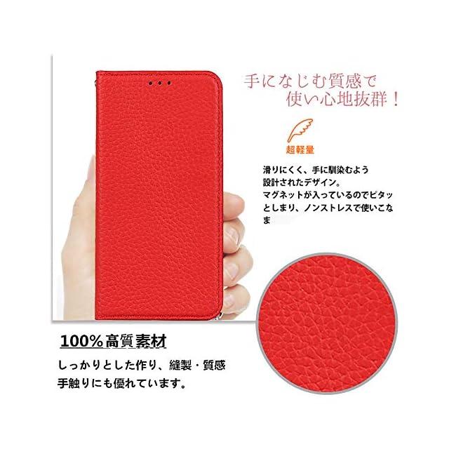 【上質の皮革+TPU】レザーケースは、レトロの表面(高品質のライチ紋真皮)+優しい裏面(柔軟なTPUカバー)と組み合わせ、衝撃吸収機能あり、プレミアムトップグレイン本革製の精密で、質感、強さ、キャラクターなどが厳選されています。。 丈夫で柔らかい感触。耐衝撃性 スタンド機能、耐衝撃性 スタンド機能、滑り止め性、耐久性保護性、スリムフィット性。柔軟性のある熱可塑性ポリウレタン(TPU)と本革レザーバンパー。