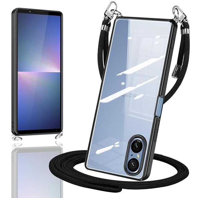 商品名:Xperia 5 V 用の ケース クリア ショルダー 透明 xperia5v SO-53D SOG12 スマホケース カバー 薄型 TPU 肩掛け 首掛け 斜めかけケース 耐衝撃 メッキ加工 TPUバンパー エクスペリア5v(ブラック)