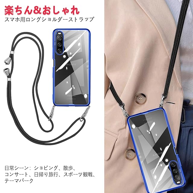 Xperia 10 III 用の ケース ショルダー クリア TPU Xperia10 III Lite SO-52B SOG04 スマホケース カバー 肩掛け 首掛け 斜めかけケース 透明 薄型 耐衝撃 エクスペリア10iii(ブルー)