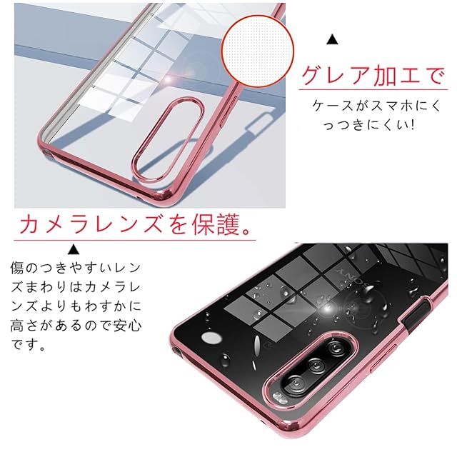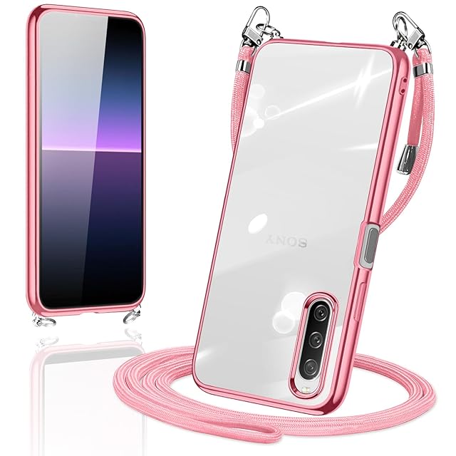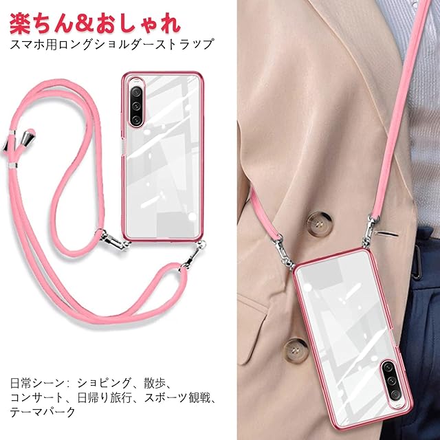Xperia 10 II 用の ケース ショルダー クリア SO-41A SOV43 カバー スマホケース 肩掛け 首掛け 斜めかけケース 透明 TPU 薄型 耐衝撃 メッキ加工 TPUバンパー エクスペリア10マーク2(ローズゴールド)